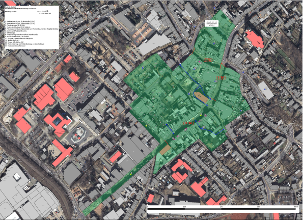 Abb. 1: Abgrenzung Sanierungsgebiet (inkl. der Erweiterungen) und Verortung der Maßnahmen